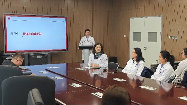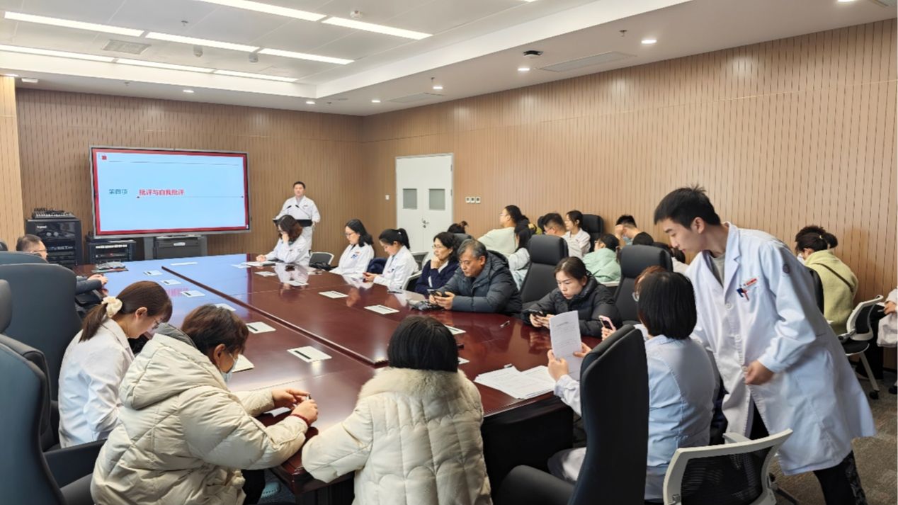 第四项,开展批评与自我批评。党支部年轻党员梁文斌、团支部书记何拓、邓蕾博士、丁墩副主任、张月浪主任结合自身工作岗位及工作性质,从医教研管等各方面进行了自我剖析与批评,同时也为自己在今后的工作中改进提出了设想,请广大党员同志帮助与监督。