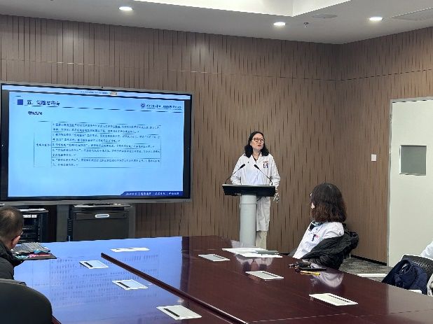 第一项,由党支部陈欣书记做2024年党支部工作汇报。2024年党支部按照院党委要求及考核指标积极组织党支部开展丰富多彩的活动:1.强化理论学习。组织科室党员、预备党员、入党积极分子及部分实习、进修及住培医师党员观看2024年高校党组织示范微党课展播,庆祝建院87周年及党员教育轮训线下及线上全覆盖,召开“深化党纪学习教育,提升党性修养,做新时代合格党员”、“深入学习贯彻党的二十届三中全会精神”、“保密工作提醒”等组织生活会,支部书记进行了“心有大我、筑梦医路”微党课学习等。2.党建强科。按照院党委“对标先进学经验 拓宽思路促提升”的工作要求,医学影像科班子成员赴北京、武汉向国内顶尖放射科医疗机构学习,提升科室的技术水平和服务能力;党员同志带头开展CT引导下的肺结节穿刺术及药物负荷磁共振心肌灌注成像。3.党建交流。“党建+行业联盟”,开展跨行业党建交流,实现优秀党建资源共建共融共享;4.文化建设。在医师节、教师节、重阳节、冬至开展丰富多彩慰问、团建活动,积极参加西咸年会文艺汇演。5.对外宣传。借助医学影像科公众号及党建圈平台输出科室精品课程、宣传重大活动。