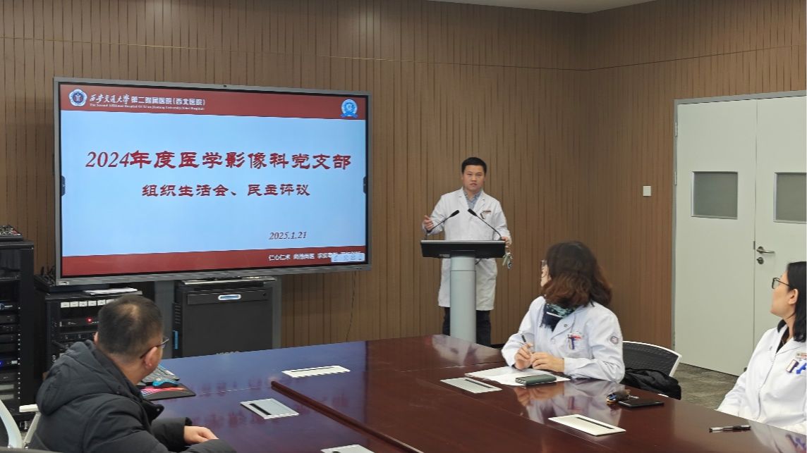 2025年1月21日中午,医学影像科党支部组织全体党员在西三楼六楼会议室召开 2024年度党支部组织生活会和民主评议党员工作会议,会议由党支部宣传委员刘乐主持。