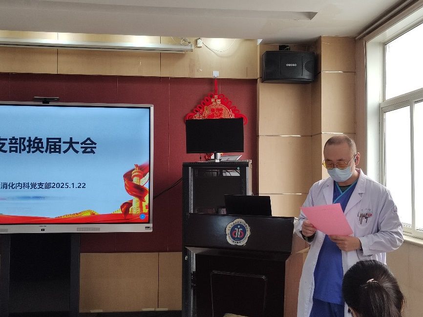 2025年1月22日中午,消化内科党支部在西二楼八楼示教室召开换届大会。此次会议由新一届党支部组织委员马师洋教授主持,支部全体党员参会。