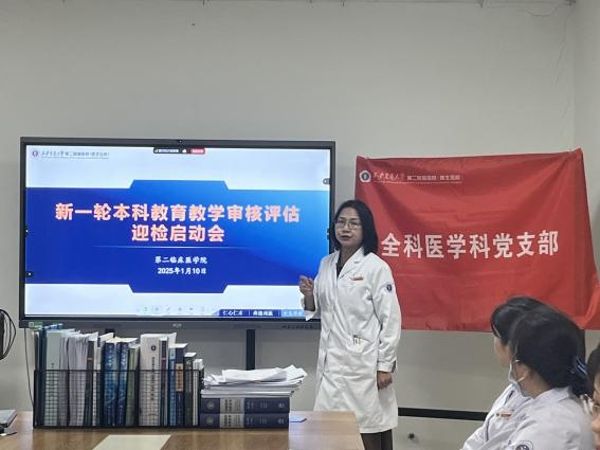 2025年1月17月上午,全科主任赵晓静在西安交通大学第二附属医院大明宫院区2层全科示教室进行新一轮本科教育教学审核评估迎检启动会宣讲活动。全科医学科全体医护人员通过线上和线下相结合的方式参与。