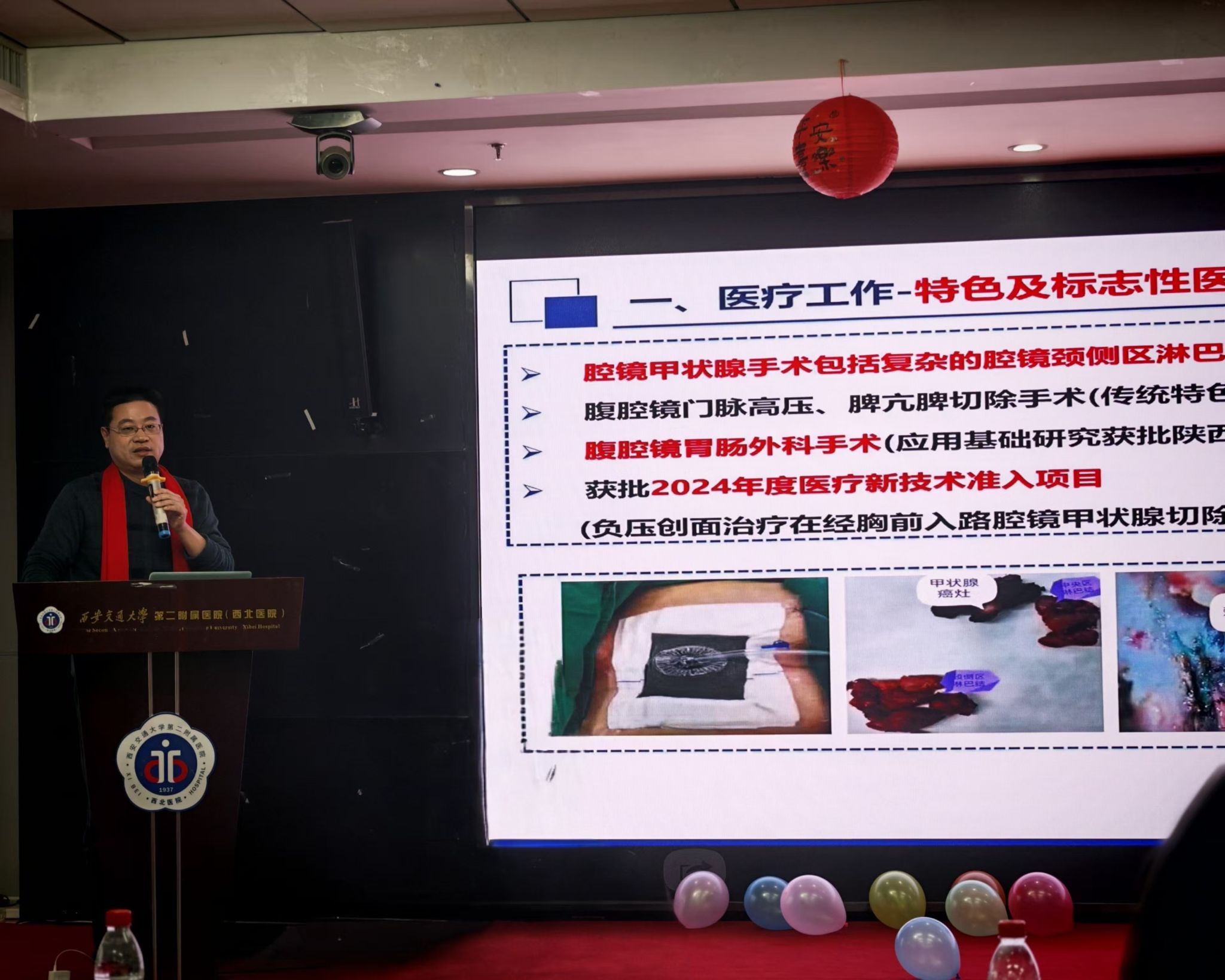 2025年1月25日下午,老年普通外科在大明宫14楼会议室隆重举行了2024年终总结暨2025新春联谊会。此次会议由王志东主任主持,科室全体成员参加,回顾了2024年的成绩与不足,并展望了新一年的发展方向。