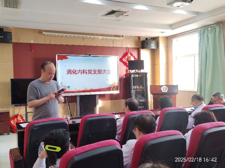 为进一步加强党支部建设,提升党员思想觉悟,2月18日16:30,消化内科党支部在西二楼八楼示教室召开党员大会。会议由支委马师洋教授主持,全体党员同志参加。