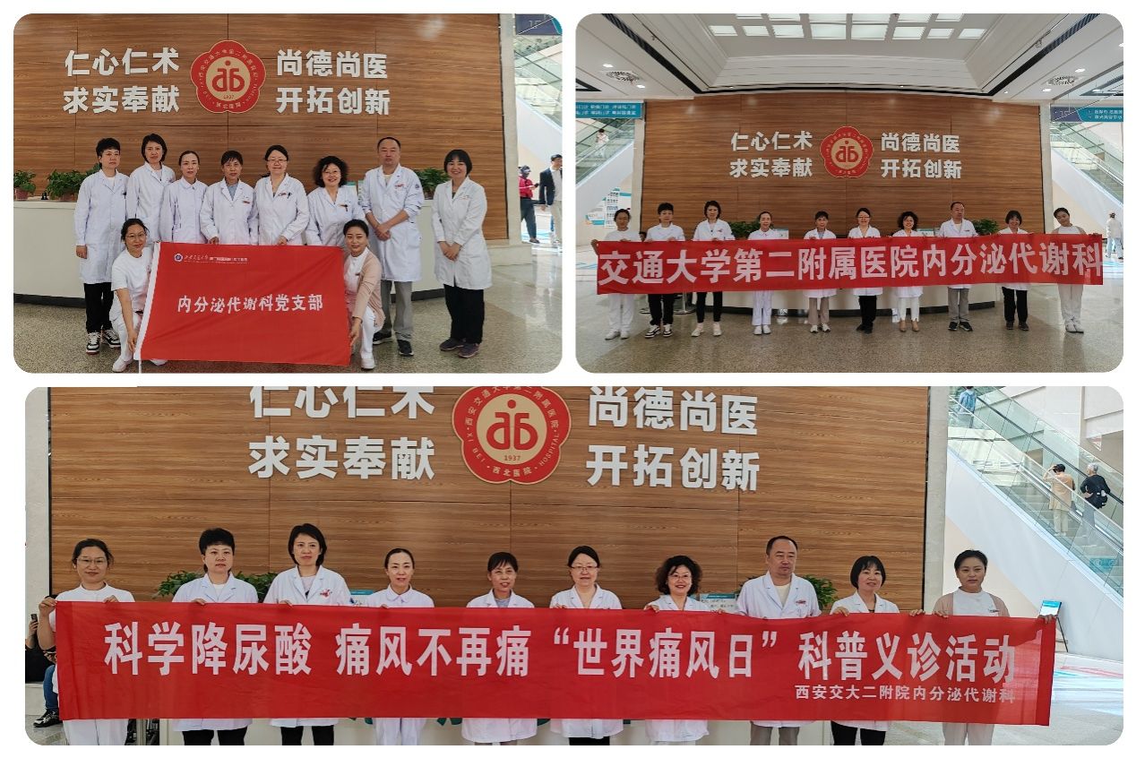 4月20日,是世界高尿酸血症日,也称为世界痛风日,今年的主题是“数字改变痛风”,旨在通过筛查预警、精准防控,远程协同等方式,推动痛风防治迈入数字化赋能新阶段。据国家卫健委统计数据显示,高尿酸血症已成为继糖尿病之后的第二大代谢疾病。为切实提高广大民众对高尿酸血症的认识,内分泌代谢科于4月17日上午在大明宫院区举办高尿酸血症义诊活动。