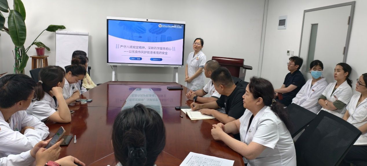 6月17日中午,药学部党支部在药学部会议室召开组织生活会,支部书记王娜同志以《严守八项规定精神,深耕药学服务初心——以优良作风护航患者用药安全》为主题,为与会党员讲党课。