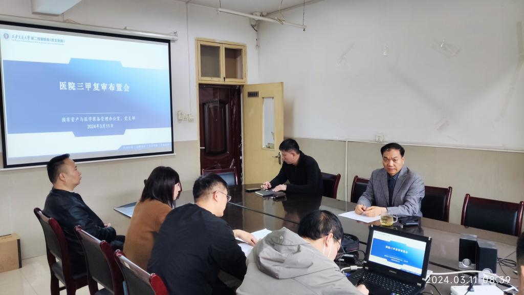 为积极响应医院三甲复审冲刺阶段提质增效要求,3月11日上午8点30分,医院国有资产与医学装备管理办公室(以下简称国装办)在国装办二楼会议室召开科室三甲复审工作布置会。国装办党支部委员、科务会成员、各班组长及办公室成员十余人参会。会议由国装办主任兼党支部书记叶泽宇主持。