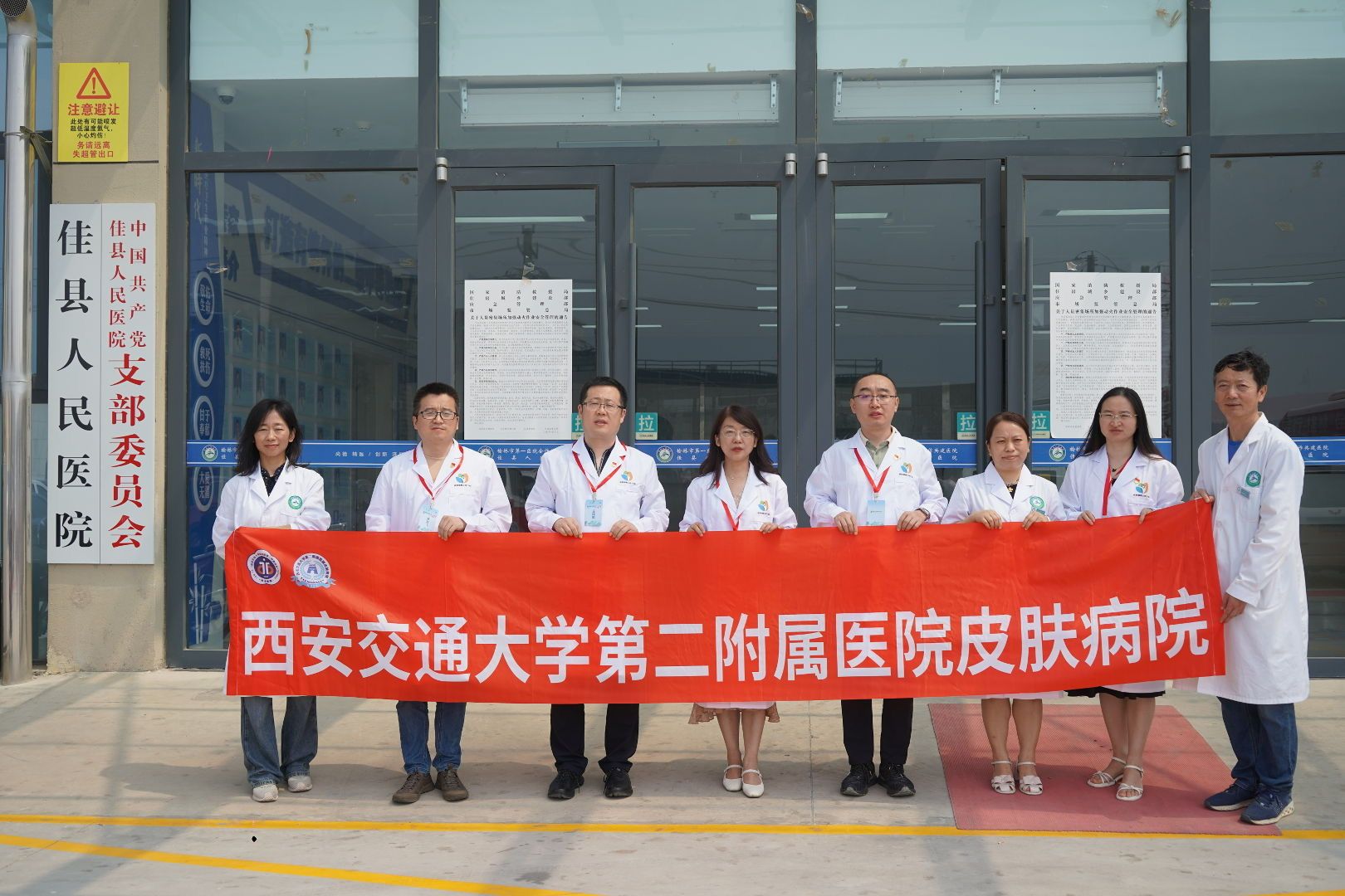 7月12日,皮肤病院党支部支委和九三学社社员踏着晨露奔赴榆林市佳县人民医院,开展“皮肤健康三年行动”高水平专家基层行活动,参与此次义诊活动的有九三学社社员耿松梅主任、党支部书记王晓鹏、组织委员朱龙飞、宣传委员孔淑贞、九三学社社员张燕飞,以及西安交大一附院榆林医院王应权副主任。