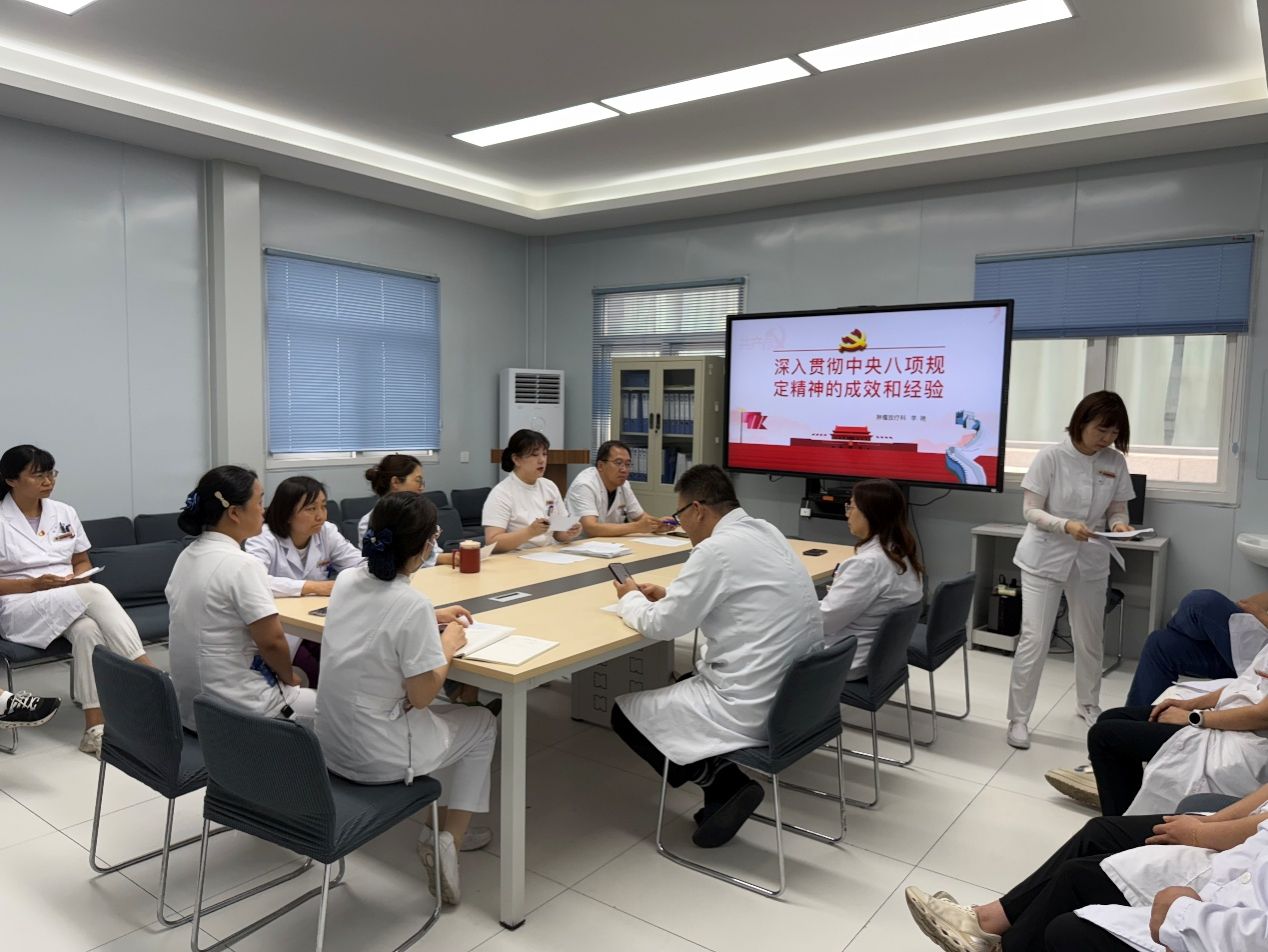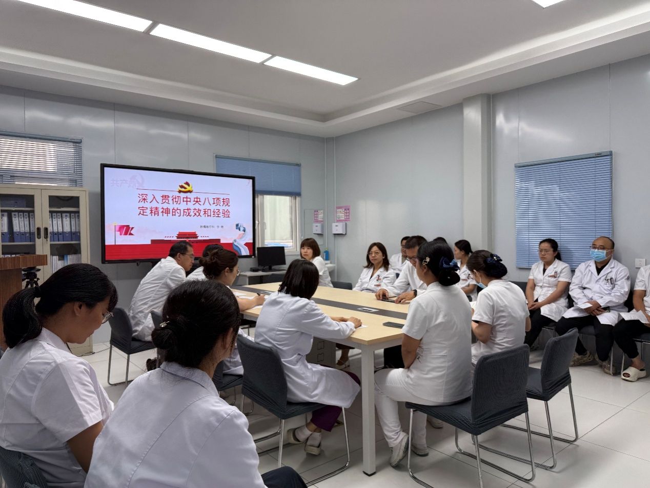 2025年7月23日下午,党支部书记马红兵在肿瘤放疗科会议室主持召开支部全体党员大会。科室全体党员、预备党员、积极分子及发展对象参会。本次活动由李艳同志带领支部党员集体学习主题为《深入贯彻中央八项规定精神的成效及经验》的党课。同时,支部还讨论杨玉婷、孔甜甜同志转为预备党员相关事宜。