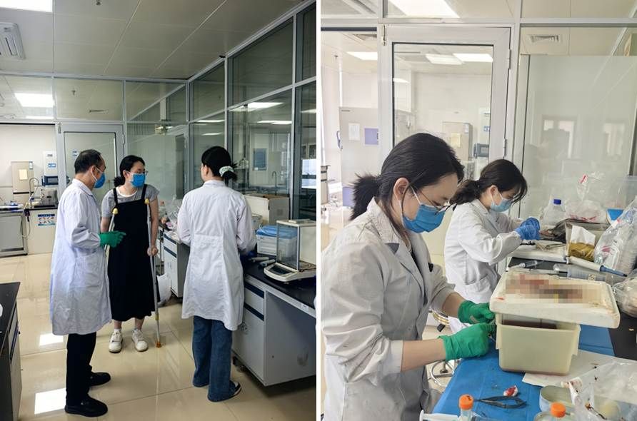 9月9日8时,科研中心实验室里呈现出一片繁忙的景象。耳鼻喉科研究生卢蕊同学因近期意外摔伤导致腿部骨折,行动十分不便,但原定于当日的小鼠取材实验仍需如期完成。得知此情况后,科研中心实验室迅速响应,成立帮扶小组,党支部宣传委员罗迈和细胞组组长马宁两名党员同志主动请缨,承担起协助任务,确保卢蕊同学能够顺利开展实验工作。