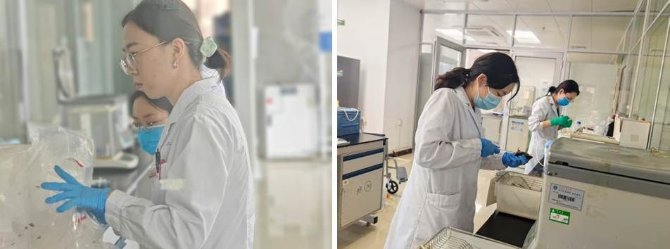 实验过程中,两名党员同志充分发挥模范带头作用,积极配合卢蕊同学完成器械准备、实验材料传递、废弃物处理等辅助工作。她们严谨细致、分工协作,既严格遵守实验操作规范,又密切关注卢蕊同学的身体状况,确保实验过程安全与高效。在她们的帮助下,卢蕊同学得以全身心投入关键技术环节,最终圆满完成了实验任务。