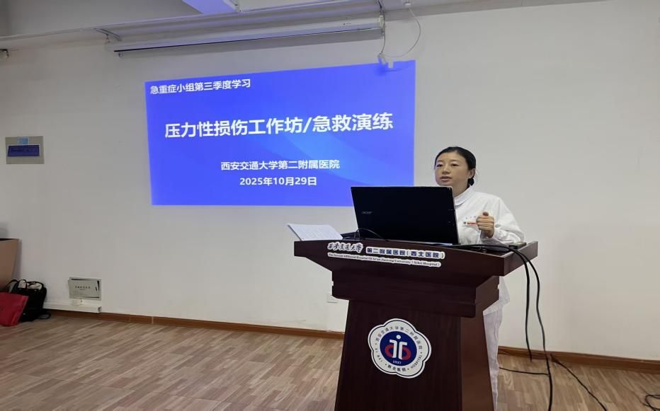 为持续提升临床护理质量与应急救治能力,我院急危重症专科小组在护理部的指导下召开以“筑牢生命防线,赋能精准救护”为主旨的专题培训。本次培训聚焦危重症患者压疮预防及AED使用两个方面,旨在破解临床护理难点,以及提升护理人员的专业应急能力,为患者的生命健康筑起最坚实的防线。培训于10月29日下午在后勤保障部三楼会议室举办,培训由重症医学科护士长王利、急诊科副护士长邱小娟筹划,老年普通外科副护士长王园主持,小组其他核心成员及联络员近50人参加。