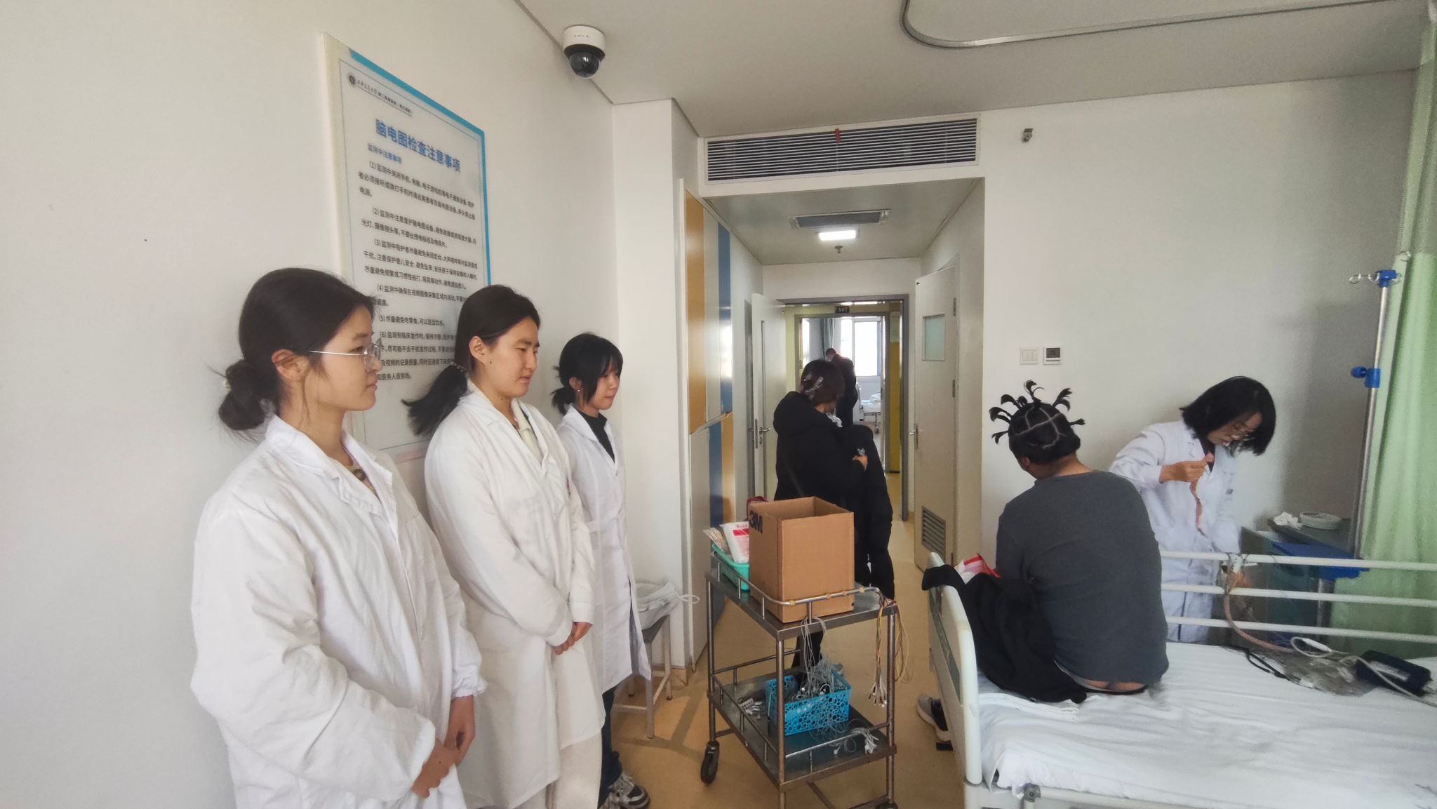 本次志愿服务以“精准对接需求、涵养人文关怀”为原则,志愿者经过系统岗前培训后被分为5个小组,奔赴医院各服务岗位开展工作。在24小时脑电图监测室,志愿者协助医护人员耐心安抚等待监测的患者及家属,提供温暖关怀;走进儿科血液病病房,志愿者化身“暖心陪伴者”,通过多样的互动方式,驱散孩子们治疗期间的孤单,用童真关怀传递医学温度;进入到PICU、ICU病房特殊诊疗环境里,志愿者严格遵循科室要求,规范穿戴防护装备,在医护人员指导下承担部分基础性工作;在门诊导医岗位,志愿者熟悉就诊流程与科室分布,主动为老年患者、行动不便患者提供挂号引导、缴费协助、报告打印等服务,细致解答患者就诊疑问,有效提升门诊服务效率,让患者感受到“一站式”诊疗关怀。