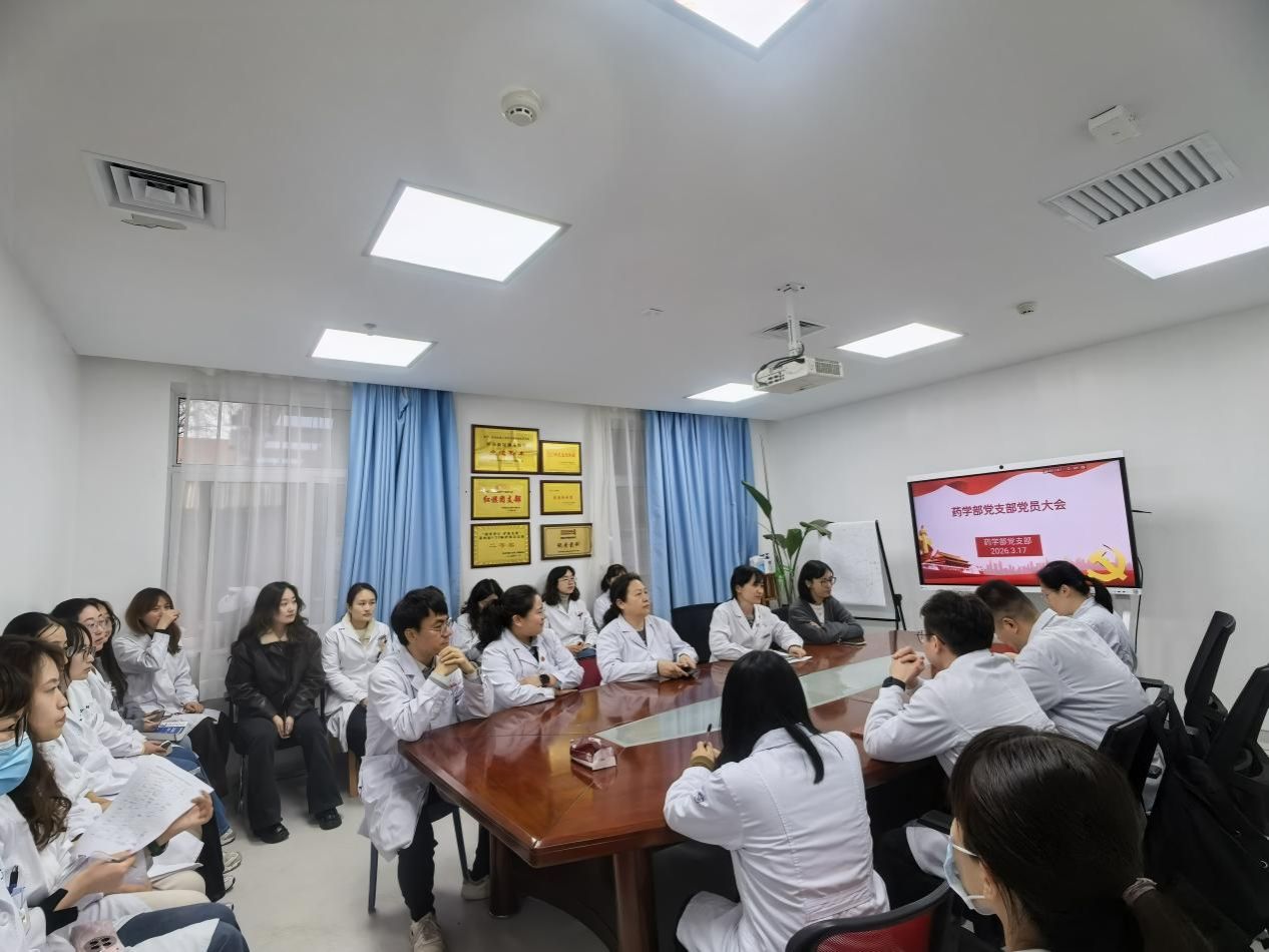 2026年3月17日,药学部党支部组织召开全体党员大会,深入学习贯彻《中共西安交通大学第二附属医院委员会开展树立和践行正确政绩观学习教育实施方案》和《2026年党建强院——“党建+十大项目”(征求建议稿)》两份重要文件,并围绕“党建+十大项目”如何落地药学实际工作展开深入研讨,支部书记王娜同志主持会议。