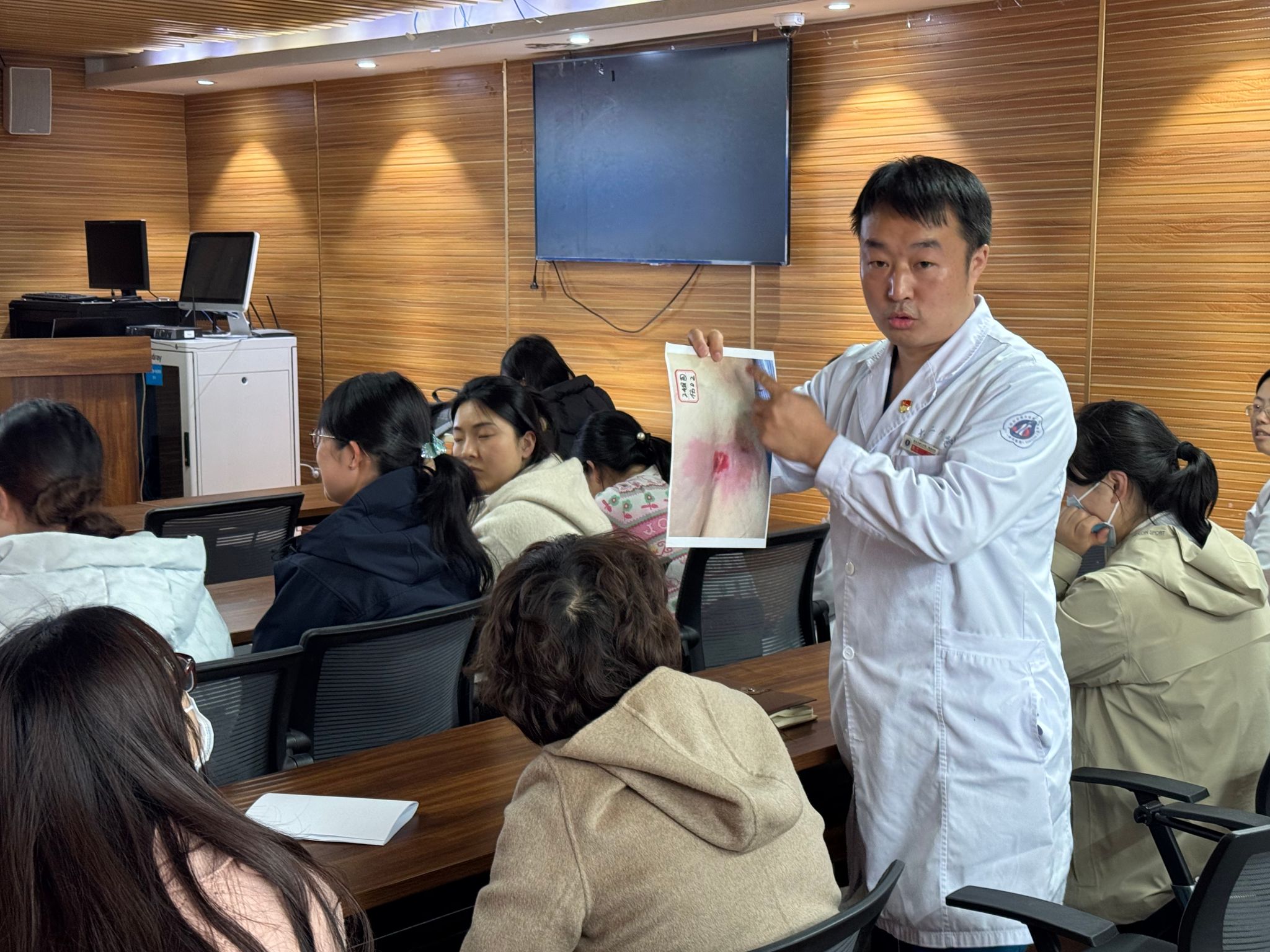 会议首个环节,王金娟副护士长聚焦压力性损伤的识别与处理开展专题培训,结合《压力性损伤预防及处理》专业内容,讲解了压力性损伤6期分类、伤口评估三角、各期损伤核心处理原则等关键知识,并通过现场分组抽签形式组织案例分享研讨,40分钟的沉浸式实战分析,让参会人员进一步夯实了压力性损伤临床识别、分期判断与针对性处置的实操能力。