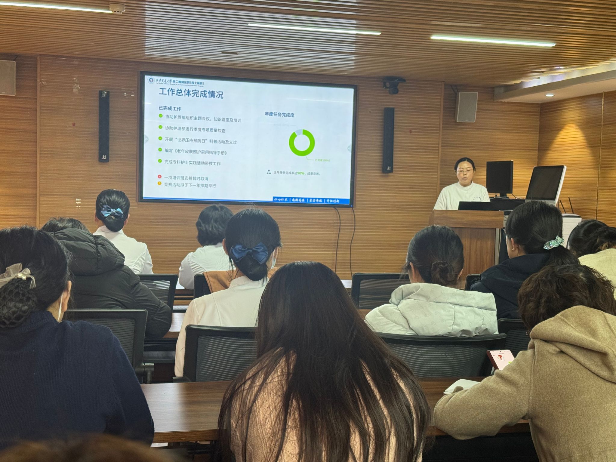 此次会议紧扣临床护理实际需求,将压力性损伤专业知识、管理制度与专科小组年度工作深度结合,既实现了专业技能与制度规范的再巩固,也完成了年度工作的全面复盘与新年度工作的系统规划,有效凝聚了专科护理团队力量。下一步,我院压疮伤口造口专科小组将以此次会议为契机,落实各项工作安排,深化专科护理实践,持续优化压力性损伤预防、评估与处置流程,不断提升我院伤口造口专科护理服务水平,为患者提供更专业、优质的护理保障。