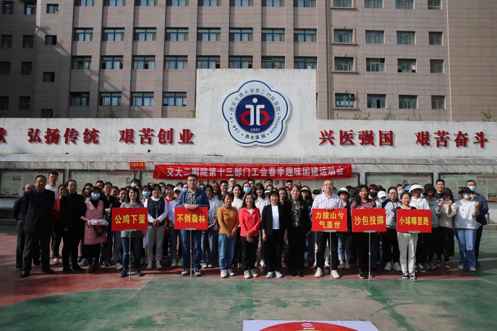 趣味团建运动会,旨在通过集体育锻炼与趣味协作一体的运动项目丰富职工业余文化生活,同时锻炼和提高参与者的思维能力、反应能力、协调能力和意志力,让职工们的工作和生活张弛有度。同时促进职工团结合作、沟通交流、增强部门凝聚力。同时以2023年的100天为里程碑,继续踔厉前行,再创交大二附院更辉煌!