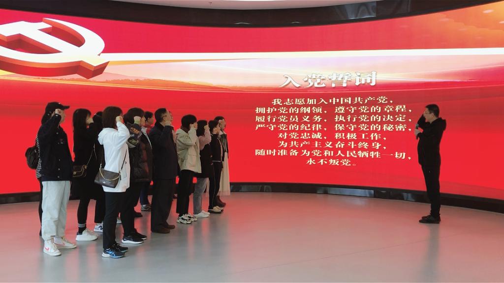 最后,在鲜艳的党徽照耀下,由党支部书记任晓勇主任带领全体党员进行庄严宣誓,重温入党誓词,牢记初心使命,大家深深感受到了作为一名共产党员的使命与责任。