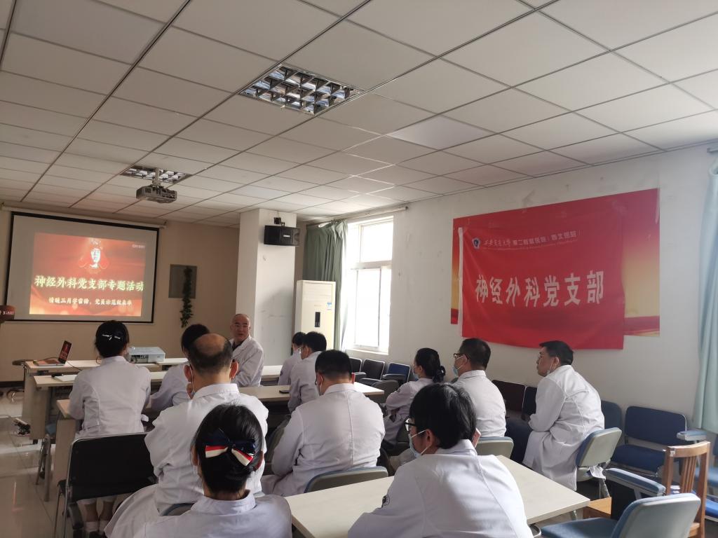 3月29日上午,神经外科党支部在神经外科示教室召开三月专题组织生活会,会议主题为“传承——榜样的力量”,由支部书记屈建强主持,神经外科党员群众共同参加。借三月“学雷锋纪念日”为契机,播放时代楷模的事迹,传播榜样的力量。