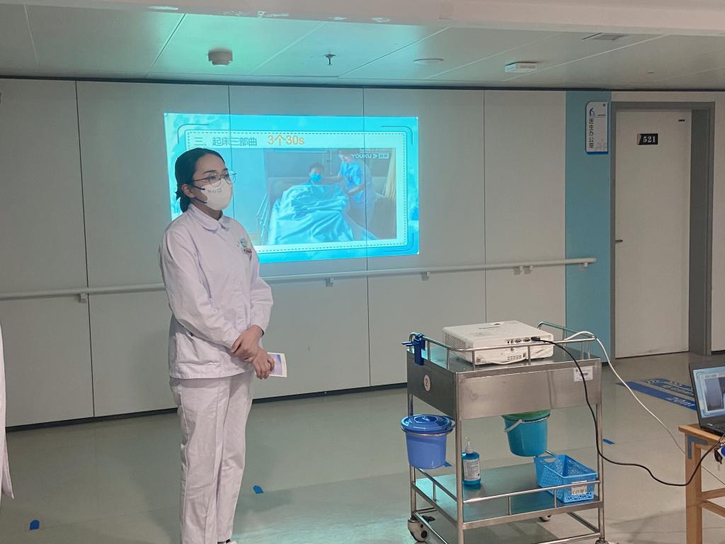众所周知,跌倒是一个不可忽视的问题,一旦发生跌倒,可能会导致骨折、扭伤,严重者甚至会导致脑出血,不仅增加了患者的痛苦,还有危及生命的风险。跌倒可以发生在任何场所,包括家里,社区和医院。为保障我康复医学科患者住院期间的护理安全,2023年3月31日下午18:30,康复护士刘佳鑫组织策划了“跌倒坠床的预防和应急处理”健康宣教活动,活动共邀请病区患者及家属陪人30余人参与,并以现场讲解及视频播放的形式有序进行。