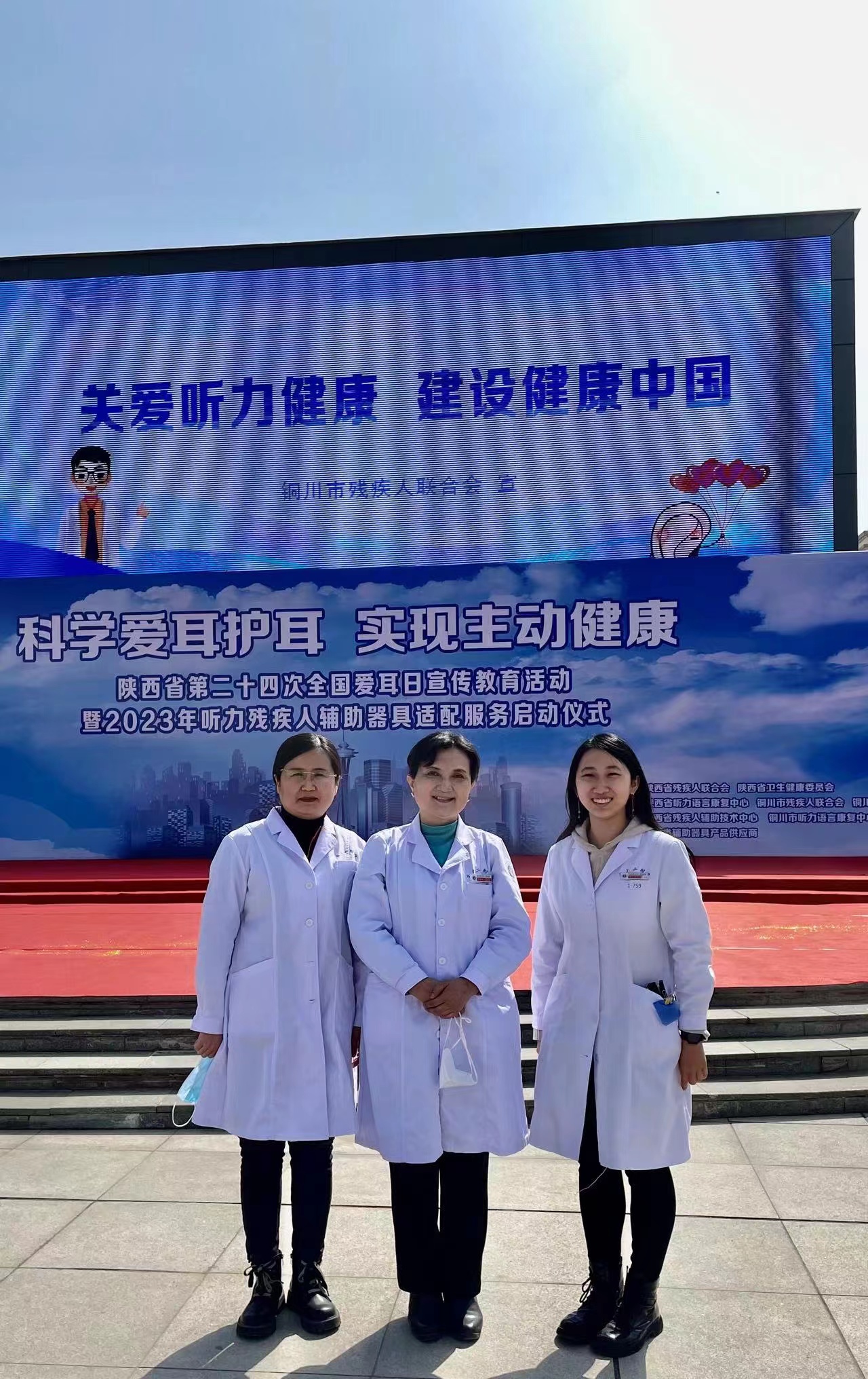 3月3日10:30,西安交通大学第二附属医院耳鼻咽喉头颈外科病院参加了陕西省残疾人联合会组织的铜川市新区阳光广场爱耳日大型义诊活动,张晓彤主任医师和邵娜主管护师为大家宣传了听力残疾人助残政策,启动 2023年陕西省听力残疾人辅助器具适配服务;宣传科学爱耳护耳知识、小龄听障儿童早期干预理念、预防老年性耳聋的知识和方法等听力残疾预防及康复知识;同时进行听力残疾人康复成果展示,以提高群众对耳聋疾病的认识。