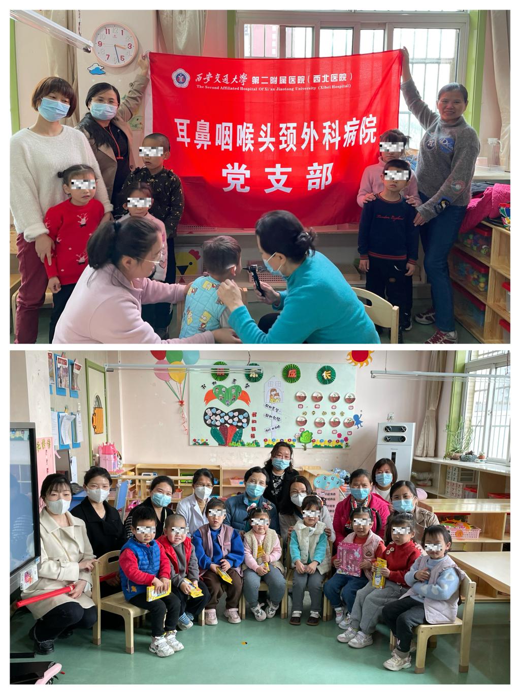 3月2日14:30,西安交通大学第二附属医院耳鼻咽喉头颈外科病院张晓彤主任医师作为中国听力医学发展基金会成员、中国老年医学会耳科学分会成员联合西安护理学会耳鼻喉护理专委会走进陕西省听力语言康复中心幼儿园开展爱耳日科普活动,张晓彤主任医师、成颖副主任医师、杜小滢副主任护师、邵娜主管护师等为听障幼儿送去温暖与爱,指导听障幼儿听力及言语训练,开展个体化科普宣传,并为孩子们赠送了礼物,旨在通过关爱活动让孩子们更好地融入社会,听到这个世界最美妙的声音。
