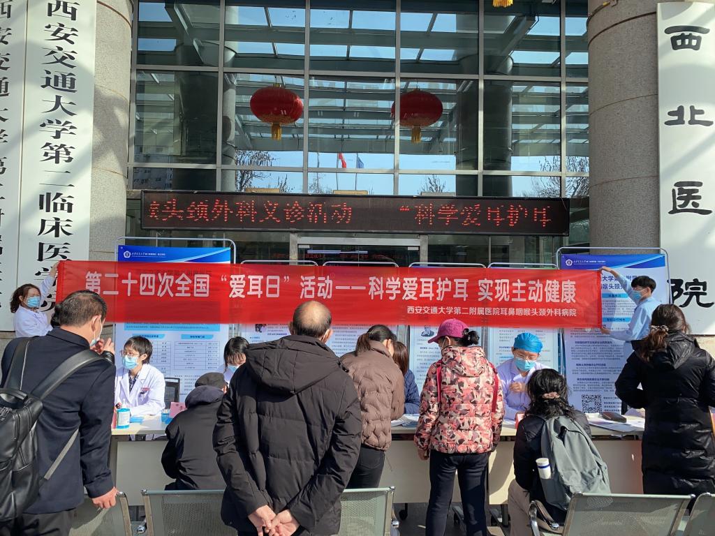 2023年3月3日,第二十四个“全国爱耳日”,活动主题为:科学爱耳护耳,实现主动健康。为深入贯彻落实党的二十大精神和党中央、国务院关于实施健康中国战略的重大决策部署,普及科学爱耳护耳知识,增强公众主动健康意识,树立耳聋防治理念和信心,减少、控制听力损失和残疾的发生,西安交通大学第二附属医院耳鼻咽喉头颈外科病院于3月1—3日举办了"爱耳日"系列科普宣传义诊活动。