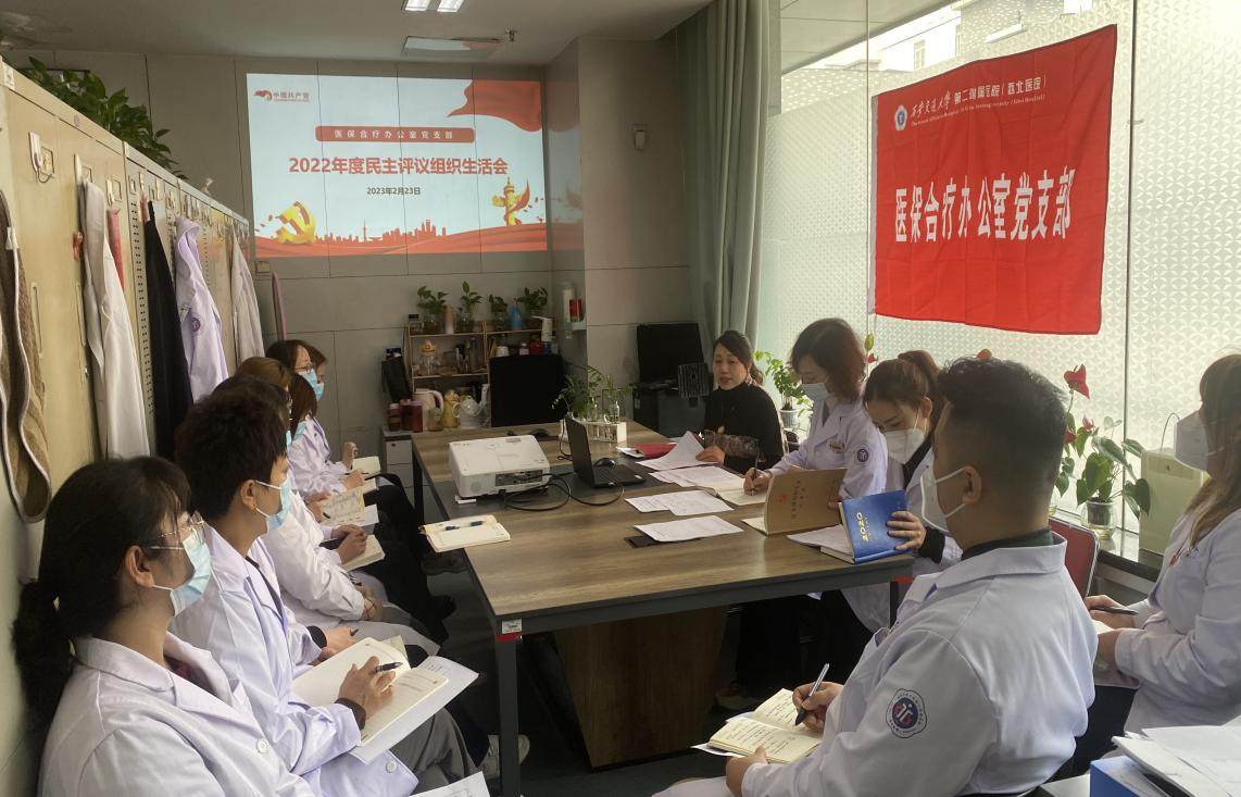 为深入学习贯彻党的二十大精神,推动支部党建和业务深度融合,助力医院高质量发展。在院党委的部署下,2月23日中午12时,医保合疗办公室党支部召开2022年度组织生活会暨民主评议会。会议由支部书记曹婷主持,支部全体党员参会。