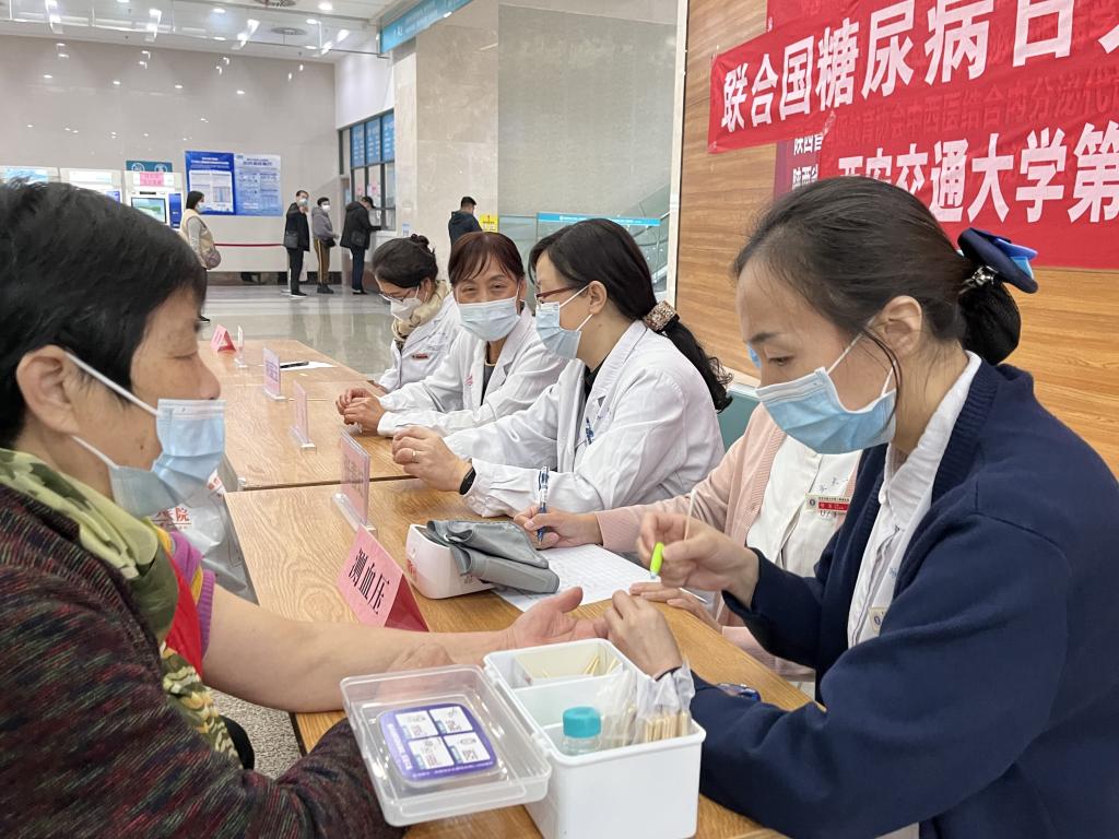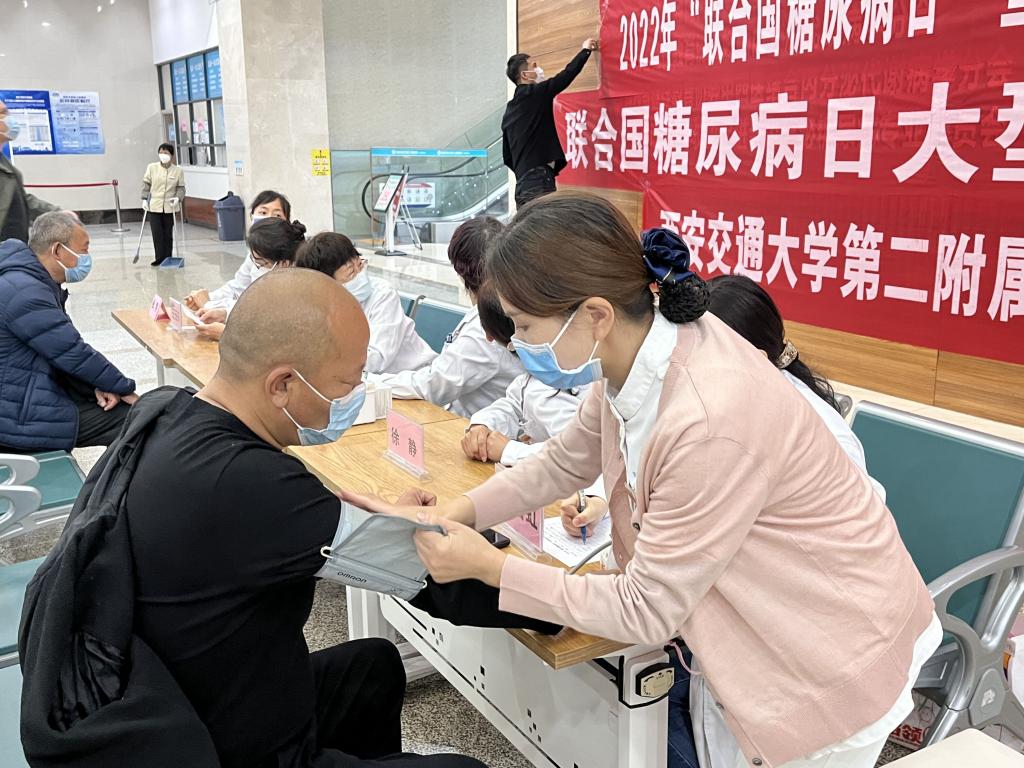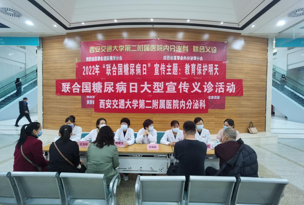 2022年11月14日是第16个联合国糖尿病日,为了让更多的人了解糖尿病的危害,改善生活中的不良行为,提高自身和家人的预防和规范治疗意识,呼吁全社会共同行动、防控糖尿病,更好地为医疗保健专业人员和糖尿病患者提供最好的医疗建议和照护。今年围绕“教育保护明天”的主题,我院内分泌科于11日在大明宫院区进行了“2022年联合国糖尿病日”系列活动。