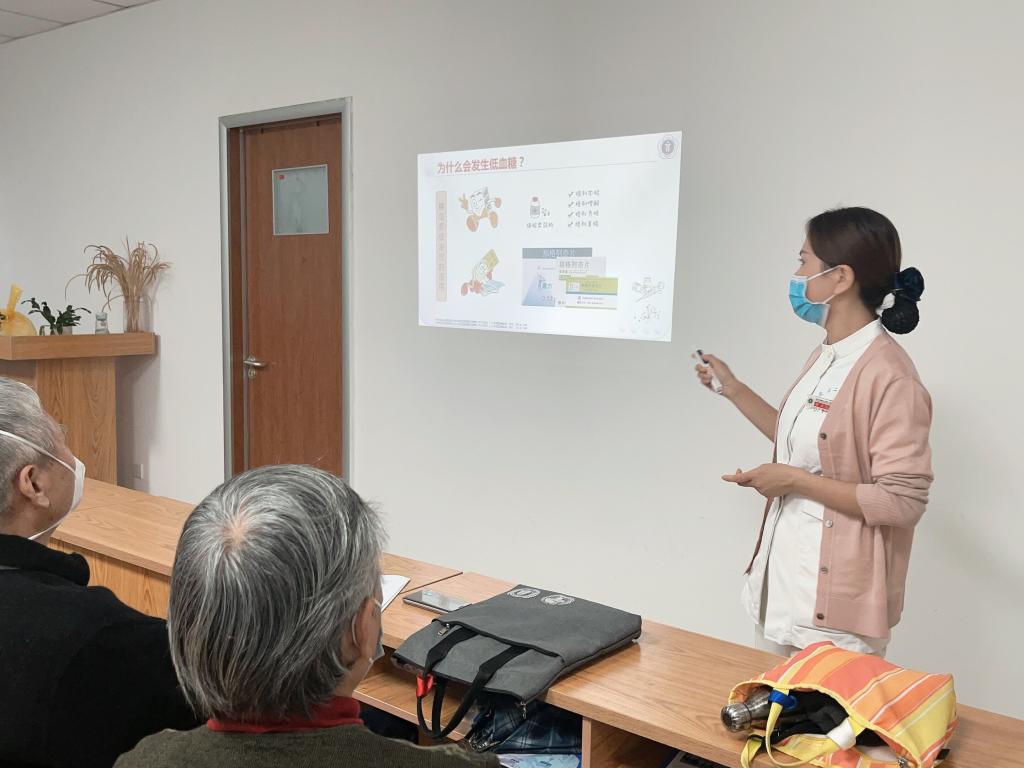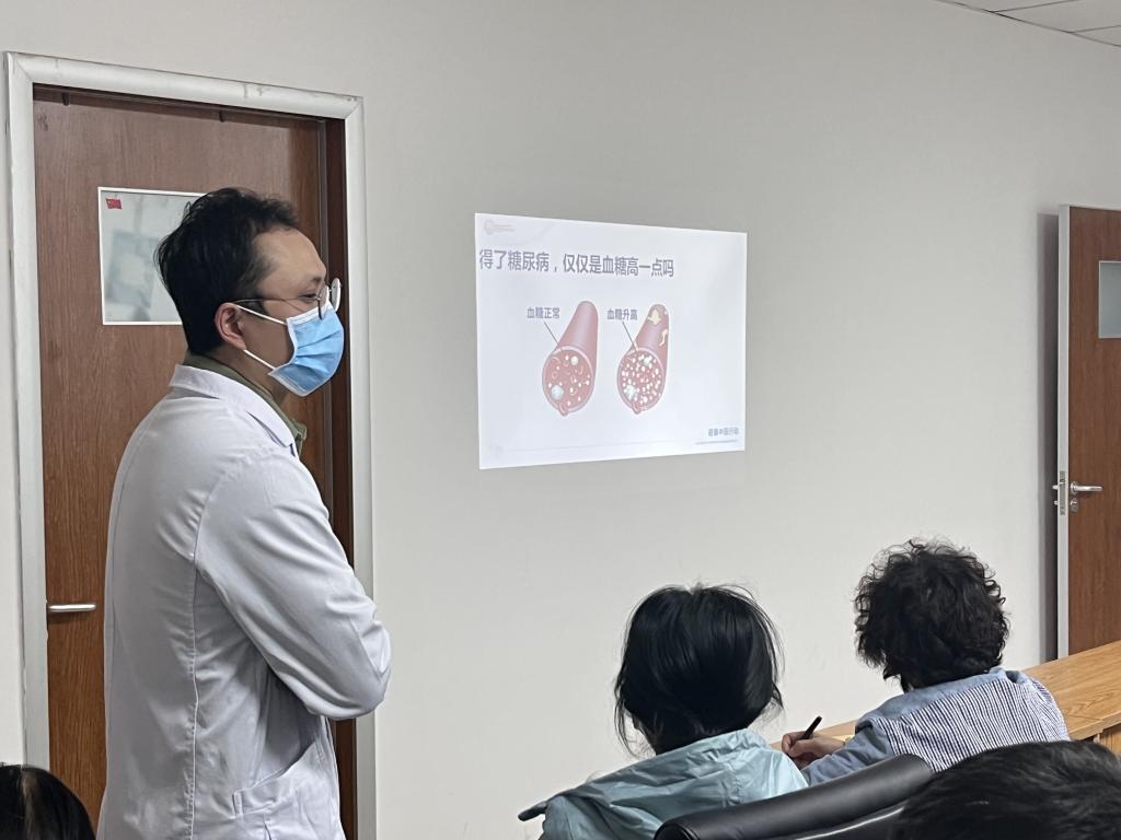 11日下午,由徐静主任带领内分泌科的医护团队,在大明宫院区内分泌科学习室进行了一系列糖尿病相关科普知识宣教活动,现场吸引了几十位患者及家属参与。贾方医师首先讲解了糖尿病并发症的相关知识,详细地为患者们进行了糖尿病并发症相关指标的解读;接下来郑乐护师进行了低血糖相关知识的讲解,为大家解开了许多低血糖相关的知识误区,生动地讲述了因不良的生活习惯而导致发生低血糖的相关病例。最后,徐静主任不仅对患者关心的糖尿病相关问题做出了详细解答,还对糖尿病常见误区进行了相关讲解和科普,得到了患者及家属们的一致好评。