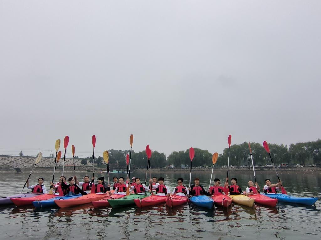 烽火光万丈,红史励后人,从烽火村出来,在绵绵细雨中,一路向前来到了醴泉湖景区,教练将我们带到了皮划艇活动区域,进行了活动前的热身准备,并且讲解了皮划艇项目的操作及注意事项,穿戴救生衣的方法及注意事项,党团员们在教练不停的鼓励下战胜了对水的恐惧,迎着秋雨下水尝试了皮划艇项目,通过这次体验,我们享受挑战与冒险,在训练过程中实现团队合作、逆境求生、克服困难、敢于胜利,在团队活动中感悟团结协作集体主义精神,培养了担当及责任的意识,提高团队沟通力和决策能力,增强集体荣誉感。