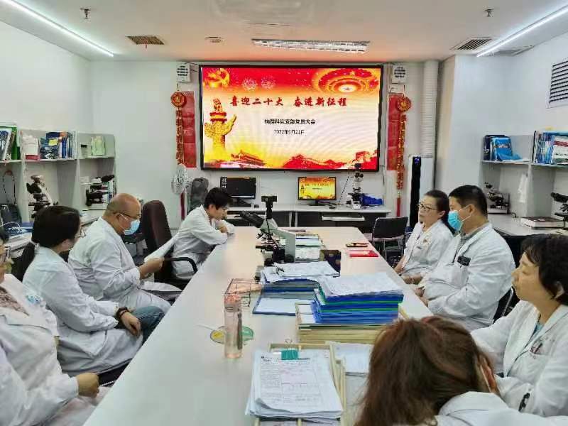 9月21日下午4点半,病理科党支部全体党员在病理科会议室召开《喜迎二十大,奋进新征程》主题生活会,会议由支部书记陈晓黎主持。