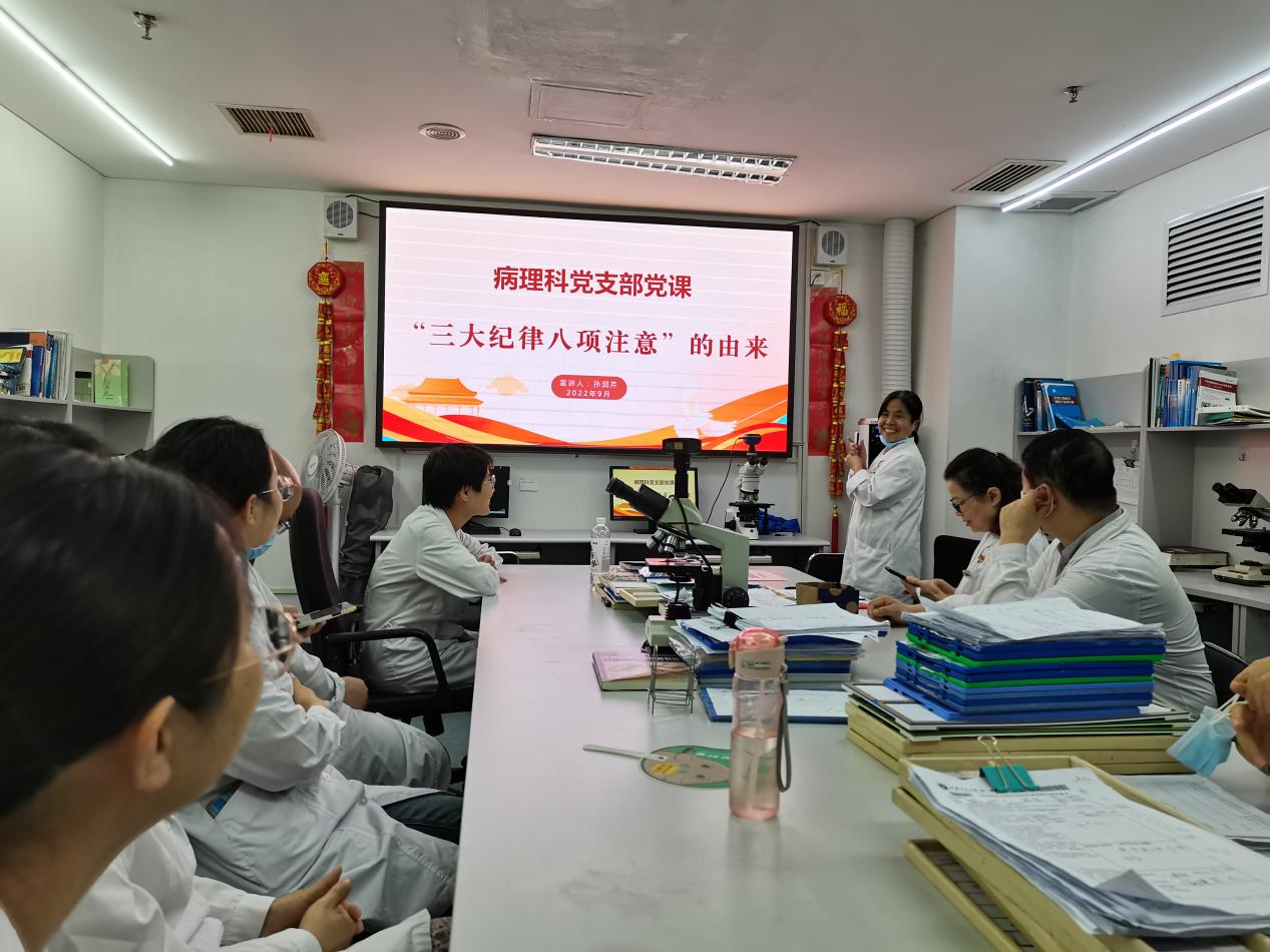 会议首先对贾少怡同志获得“奋发迎七一,建功二十大”知识竞赛二等奖表示了祝贺,给病理科党支部带来了荣誉。陈老师鼓励同志们积极参与党的各项活动,在实践活动中不断提高自己的政治理论和思想觉悟。