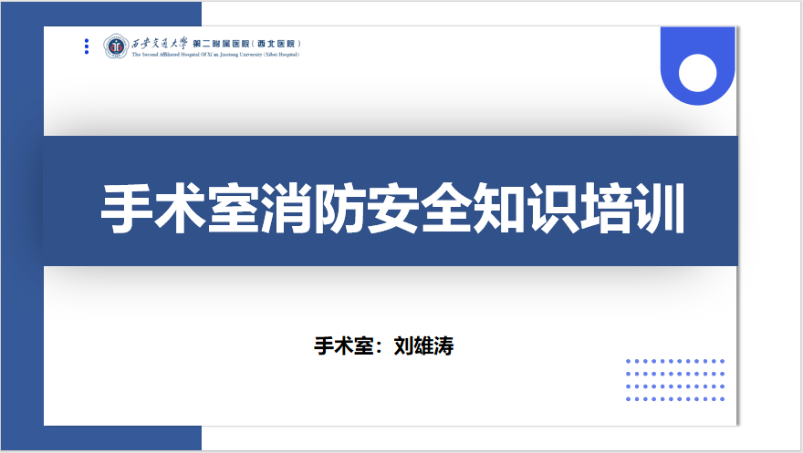 生命只有一次,消防安全记心头,1月19日晚,河南南阳一学校宿舍发生火灾,事故造成13名小学生遇难,1月24日,江西新余一临街店铺发生重大火灾,39人遇难,教训极为惨痛。手术室是医院安全生产的前言阵地。为了强化消防安全知识,保障生命财产安全,手术室举办消防知识安全培训。