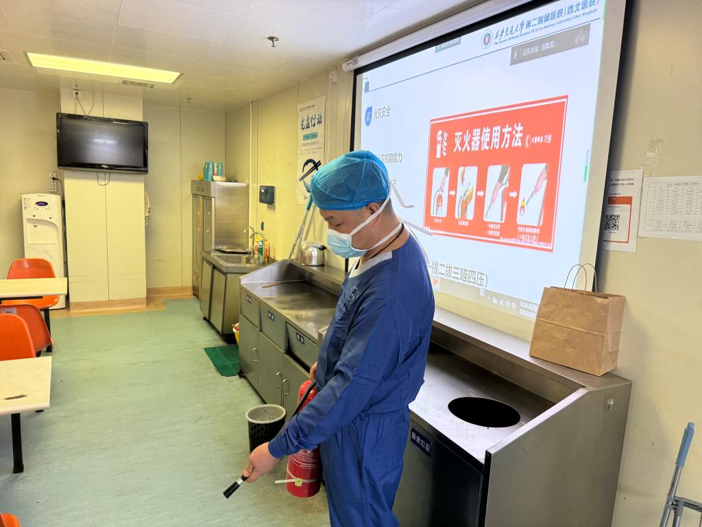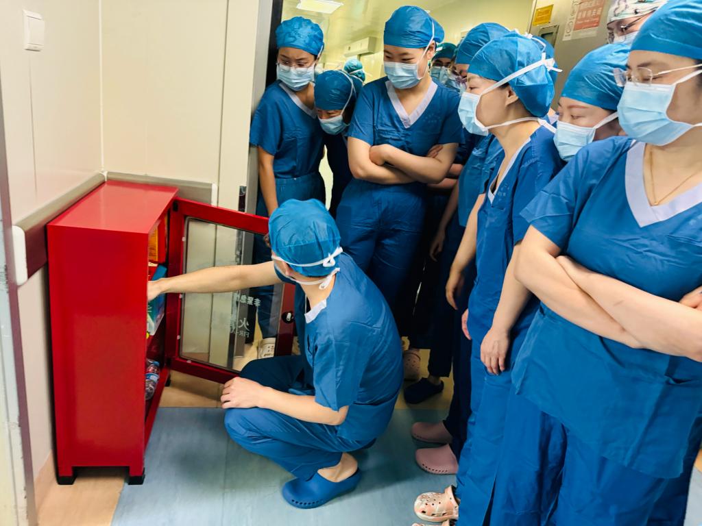 手术室全体人员在2024年2月1日组织全科人员采用线上+线下和实际操作的方式在综合住院大楼和西门诊住院大楼进行现场培训,赵丽燕护士长前期安排下,刘雄涛副护士长采用PPT授课线上+线下现场对科室现存的问题进行梳理,现场安排查看消防栓,报警装置的位置,检查应急消防箱里面所有应急物品,检查逃生通道。古茹副护士长在西楼手术室对在西楼上班的老师现场讲授预防火灾的基本知识和消防设备的使用及逃生通道位置。使手术室所有人必须高度重视防火的基本知识,手术室从火灾危害,火灾预防,消防设施的种类和部署的具体位置,及消防设备的使用方法,进行规范化培训,就火灾发生后的应急预案进行梳理。人人知消防,人人懂消防。