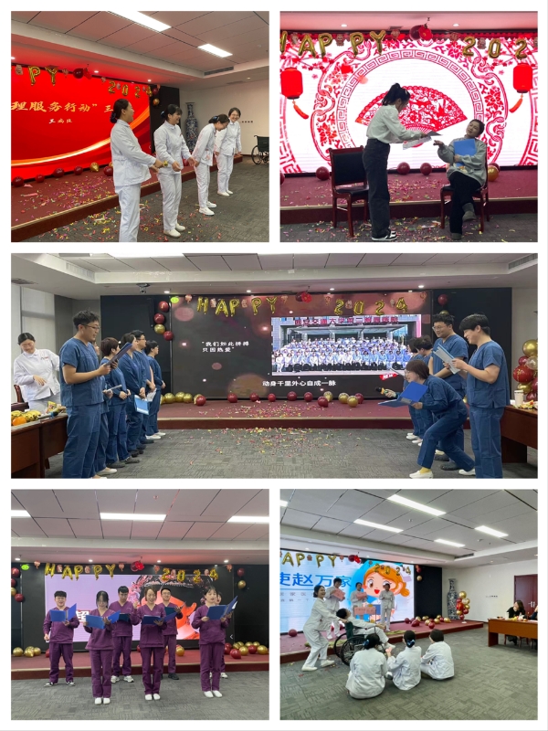张弛有度,劳逸结合,工作总结之后,进入才艺展示及趣味游戏环节,各病区护士们各显其能,大展身手,CCU病区带来了唱跳节目《我爱上班》,有声有色,让人目不暇接;一病区的护理人员表演的“带货《天使赵万家》”,将护理人员繁忙的工作进行改编,引的观众们笑声不断;二病区的相声《左邻右舍之面试》高潮迭起,绘声绘色;三病区的《改善护理服务行动》三句半,别出心裁,精彩纷呈,让护理人员对改善护理服务,提升患者感受又有了更深的理解;导管手术室的护理人员带来节目大合唱《相信相爱一家人》,激情的歌声引发全场大合唱。