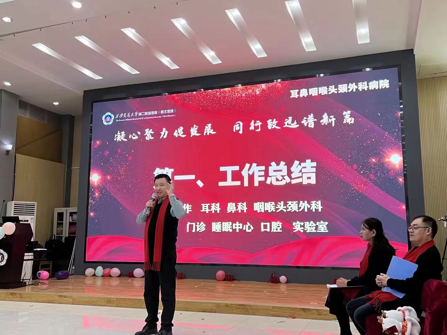 岁末年终,敬颂冬绥。2024年1月27日,交大二附院耳鼻咽喉头颈外科病院全体医护齐聚南院多功能厅,举行2023年终总结会暨迎新春座谈会。