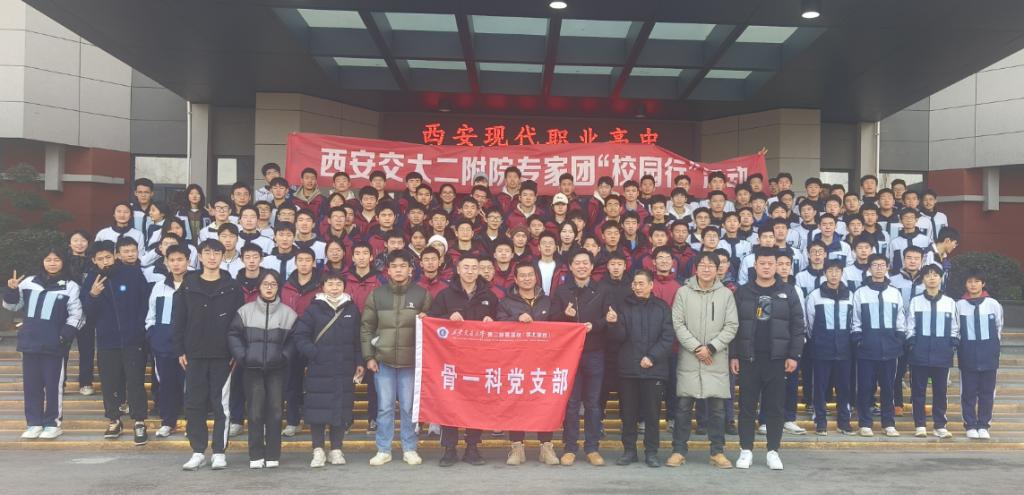 1月6日上午,受西安科技大学高新学院、西安现代职业高中的盛情邀请,骨一科党支部书记时志斌教授带领团队同院团委一起,开展校园行运动损伤科普讲座和体育特长生的义诊活动。时志斌教授以“运动中的膝关节损伤-前交叉韧带篇”为题,深入浅出的讲述了运动和体育竞技与前交叉韧带损伤的关系、前交叉韧带损伤后的诊断和急救处理、以及运动中如何防护避免前交叉韧带的损伤等科普知识,随后时志斌教授带领团队对体育特长生的伤病进行了认真的义诊活动,对同学们体育竞技中如何保护自己进行了个体化指导,这对同学们的在以后运动健康提供了良好保障。