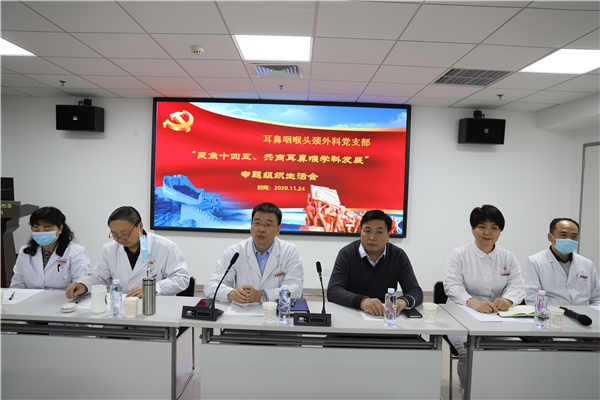 为响应中共中央《关于国民经济和社会发展第十四个五年规划和二0三五年远景目标建议》,全面落实医疗健康事业改革,促进耳鼻咽喉头颈外科全面、协调、可持续发展。耳鼻咽喉头颈外科党支部于2020年11月24日在六楼会议室召开以“聚焦十四五,共促耳鼻喉学科发展”为题的专题组织生活会,会议由耳鼻咽喉头颈外科支部书记任晓勇教授主持,院党委委员刘鹏涛主任到会指导工作,耳鼻喉党支部全体党员、发展对象、积极分子及科室骨干50余人参会。