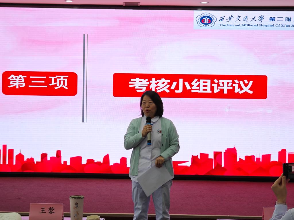 最后,王蓉护士长做了总结发言,她谈到,今天的届满评价会是对个人过去三年工作、生活的复盘。2020年入职护士的这一批护士,从实习开始就遇到新冠疫情,令人感动的是,今天的11名护士全部都参与过核酸采集及西安定点医院、宝鸡等抗疫工作。面对疫情,他们没有退缩,而是迎难直上,展示了当代年轻人的勇气与担当。也希望他们以今天的汇报为契机,作为未来工作的新起点,对自己有更清晰的职业认知和职业规划。