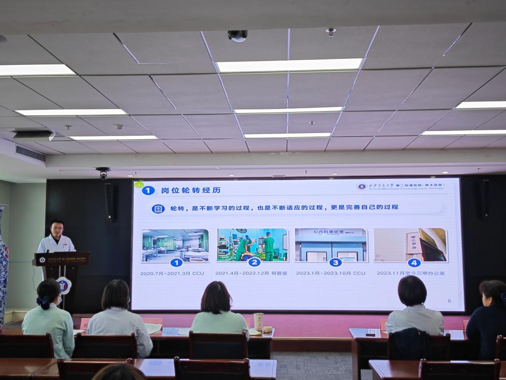 本次评审组组长为王蓉护士长,评审成员包括心内科副护士长王妮、宋雅璠、宁珊珊、雷蕾、刘欣源。前期,科室已经对大家进行了培训资料审核以及理论、专科操作技能考核。本次评价会主要是由11名护士通过PPT进行展示,回顾他们从一名新手到成为一名能够独当一面的心内科护士的经历和心路历程,总结个人在过去三年的工作中的成长和不足以及未来的职业规划。汇报后,评审组成员对对每一位护士都进行中肯的点评,指出他们展示内容的优缺点,肯定他们在工作中的成绩,对他们在工作中需要改进的地方也一一提出。