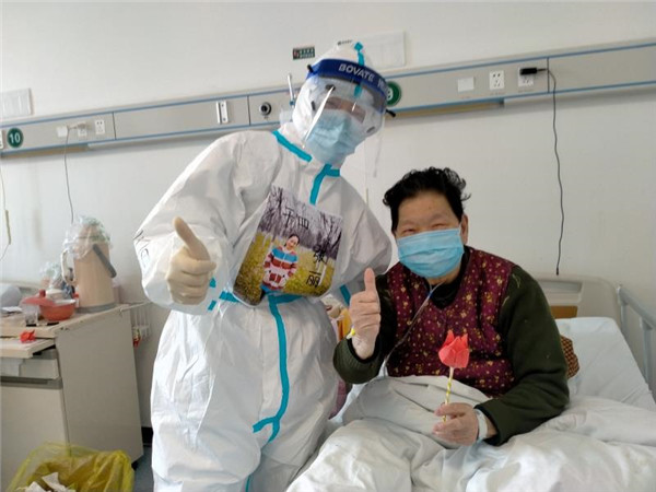 在武汉的日日夜夜里,发现武汉真的是一座英雄的城市,同济医院的老师们从过年到现在没有回过家,当晚上5点通知要把医院宿舍改建病房,7点要求他们全员撤离时,她们像逃难一样,迅速整理行装,没有怨言,配合着完成撤离工作。我们所在病区里的护士都是从同济主院区或者中法院区抽调来支援的,但我也感叹于同济医院中法新城院区在流程方面细致入微,能够让护士没有遇到过的操作,按照流程顺利处理完毕。 进入病房的患者看到我们也是感激更多,有的患者说“都是我们害了你们,有家不能回,来这给我们帮忙”“穿防护服看不清走路,你小心点别摔了”理解的话时常回荡在耳边,内心暖暖的,有的患者是全家感染,还有的家人也在隔离,经常遇日常生活物品没有人能送来,我们的队员把驻地的个人物品,捐献给患者。有一位爷爷,出院时穿的是我们队员的一双鞋,看到这些,觉得疫情无情,但人间真情常在。我们小组的8名队员每天队想尽一切办法缓解患者紧张、焦虑的情绪,手折花、手语舞、防护服贴照片等等,他们是王京、吴冰、李娅、程龙、寇璇、郑佳、王花丽,可悲的是一起这么长时间我却没能见到他们卸掉口罩的样子,只有在视频会议时才能看到他们的脸庞,大家在一起互相加油打气,共同渡过这些难忘的50多天。