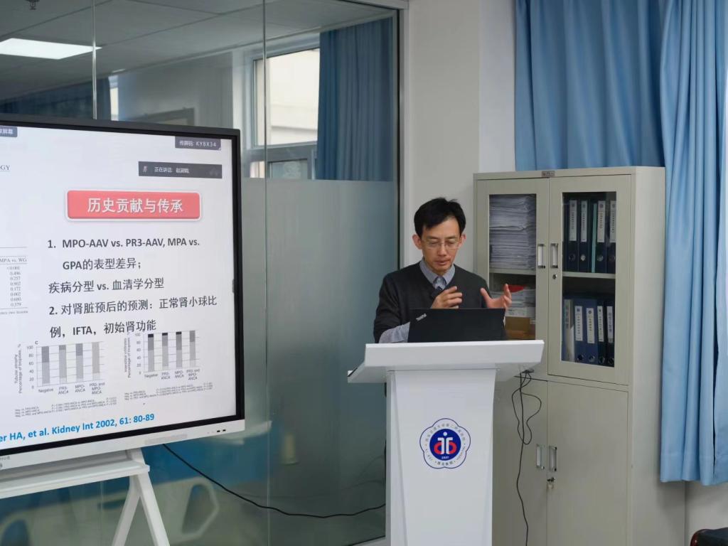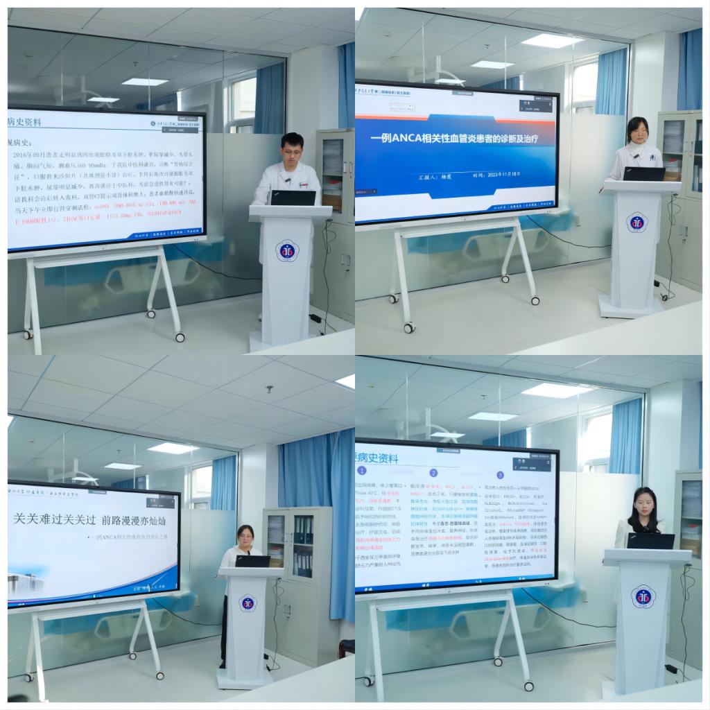首先陈旻教授带来了《ANCA相关小血管炎的进展与展望》知识讲座,接下来我院魏士卓医师和杨霞医师、西安市第三医院的冯宁和喻倩医师分别汇报了4例ANCA相关性血管炎肾损害患者的诊治。讨论中除了主管医师汇报病例,专家们了解患者病史、病情,就患者随后的治疗方案确定、药物调整等诸多问题展开一系列讨论,使参会的医生收益颇多。