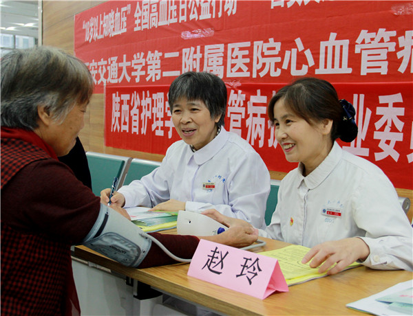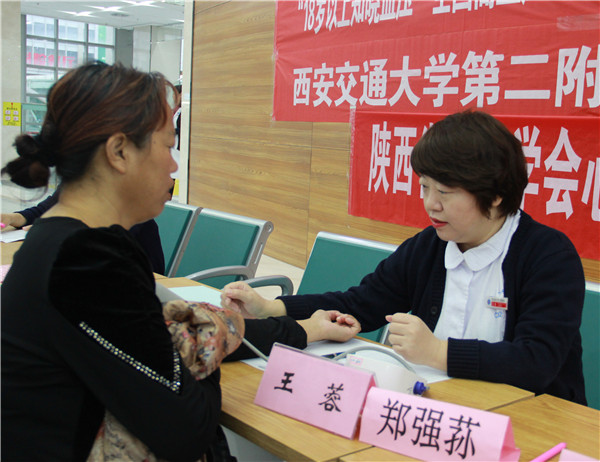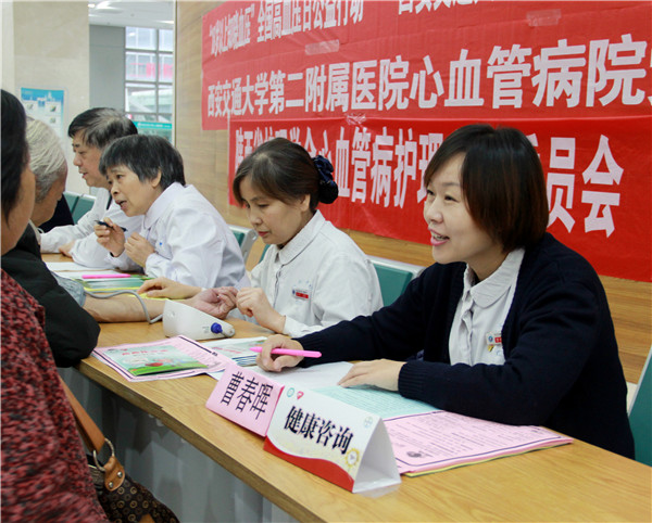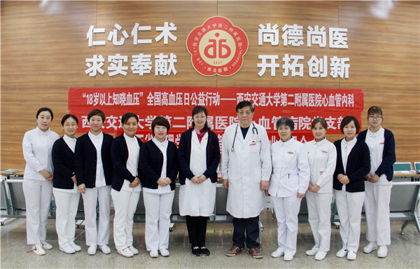为了响应全国高血压日宣传主题“18岁以上知晓血压”,提高18岁以上人群对高血压的知晓率, 2019年10月24日,西安交通大学第二附属医院心血管内科联合心血管病院党支部、心血管内科团支部在大明宫院区举行针对高血压疾病的义诊活动,科内党员干部不忘初心,牢记使命,带领团员青年积极参与公益活动。