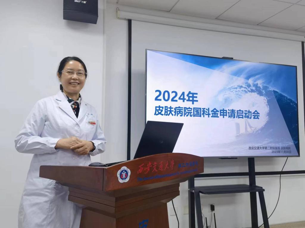 2023年11月8日下午5时,西安交通大学第二附属皮肤病院举办了2024年国科金申报启动会,在科主任耿松梅教授的号召、刘亚乐副研究员的组织下,曾维惠教授、王昊教授带领着科室三十余名骨干及青年医师共同参加了这场鼓舞人心的会议。
