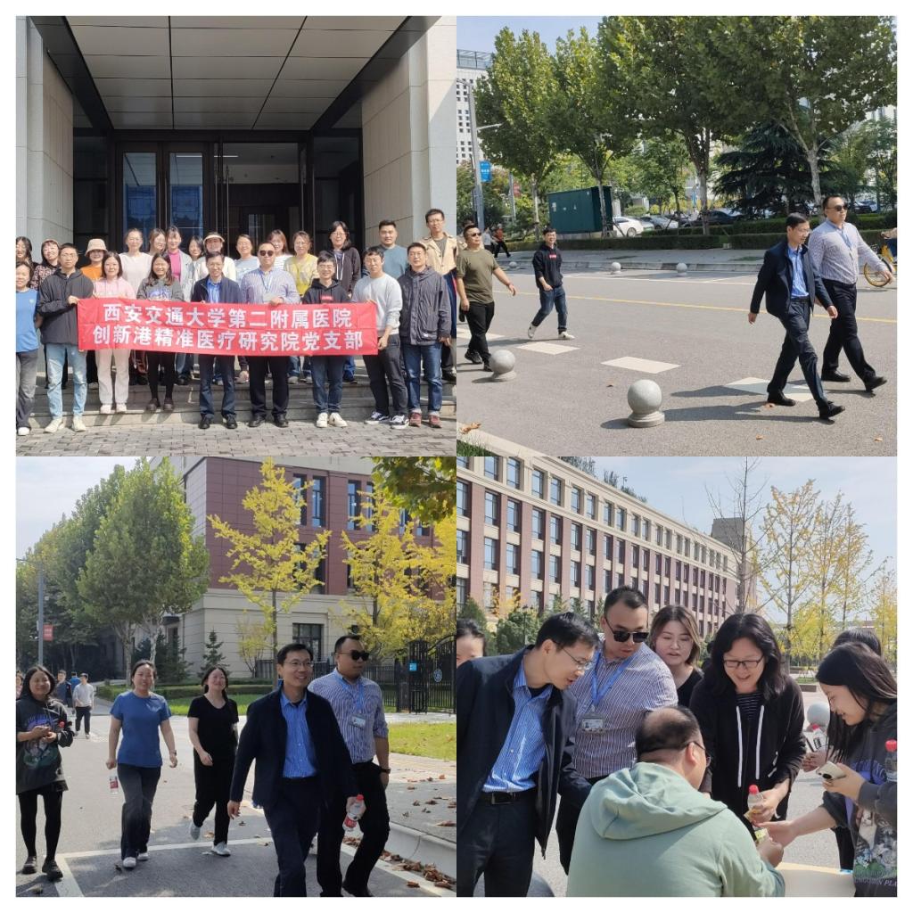 为了重温西迁精神,牢记初心使命。2023年10月13日中午12:30,创新港精准医疗研究院党支部全体党员及科室成员,在支部书记孔光耀的带领下开展校园健步走活动,活动路线从21号楼出发,经涵英楼-东梧桐路-务本路-西梧桐路-徐汇路-东梧桐路-务本路-涵英楼南广场-21号楼,全程6.6公里。