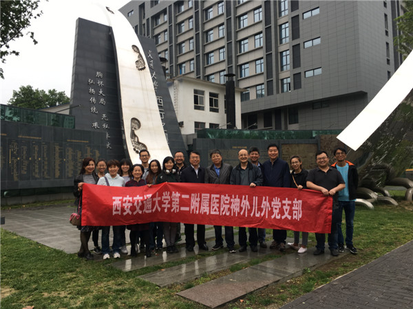 2018年4月24日下午,风清气爽,细雨蒙蒙,神外与儿外党支部在支部郭新奎书记与支部委员刘重霄老师的组织下,党支部与团支部成员代表参观了西安交通大学西迁历史纪念馆,院党委巩守平书记莅临参加。