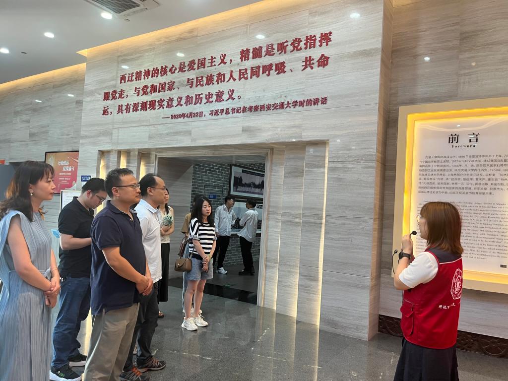 大家在讲解员的带领下,一边聆听讲解,一边驻足观看,从溯源南洋追溯到交通大学西迁。通过珍贵的照片和资料,大家身临其境地感受到了交大前辈们“背起行囊就出发,支援祖国大西北”“舍小家,为国家”的奉献精神,领会“西迁精神”的核心与精髓,也充分感受到镌刻在交大人血脉基因里为民族而生、为时代而生的家国情怀。