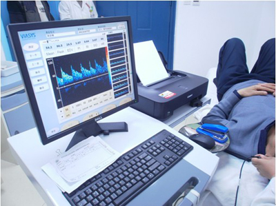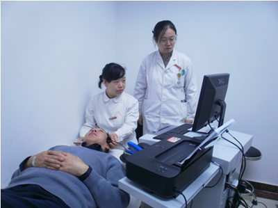 卜宁主治医师与翟妮娜主管护师在给患者行TCD检测