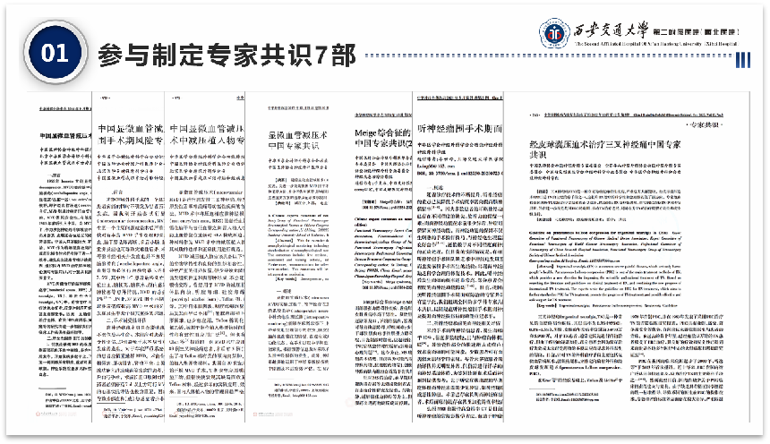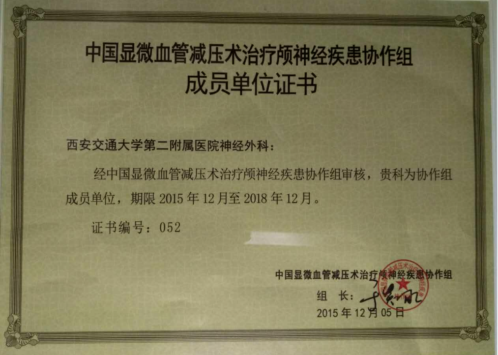 屈建强教授团队长期致力于功能神经外科相关疾病,尤其是颅神经疾病(面肌痉挛、三叉神经痛、舌咽神经痛等),的诊治。自2007年开展显微血管减压术(MVD)治疗颅神经疾病以来,已治愈患者数千例,科室据此跻身中国MVD治疗颅神经疾患协作组优势单位及讲师团成员、中国MVD治疗颅神经疾患协作组成员、中国颅神经根疾病、MVD手术多中心临床研究项目成员单位。2014年成功举办“第一届中国显微血管减压术治疗颅神经疾患高峰论坛暨中国显微血管减压术治疗颅神经疾患协作组学术会议”,为MVD在西北乃至全国的推广做出了突出贡献。学科带头人屈建强教授多年来一直致力于颅神经疾病的诊疗和MVD术式的改良和推广。针对MVD术中视野遮挡和术后复发等问题,屈建强教授及其团队率先提出MVD术中蛛网膜充分松解和神经血管压迫点旷置理念,显著提高了手术质量,降低术后并发症。为解决不能接受MVD手术的难治性三叉神经痛患者“无术可取”的困境,团队在西北地区率先开展了经皮穿刺微球囊压迫术(PBC)治疗三叉神经痛,解决了MVD治疗的瓶颈问题。后又针对PBC压迫效果异质性的问题,在国内首次将压力监测技术引入PBC术中,实现了多维参数辅助下的精准压迫手术模式,提高了手术疗效的稳定性,并因此入选2019-2020年颅神经疾患诊疗年度进展目录(排名首位)。2022年为客观评估PBC手术的神经损毁程度,在国际上率先开展并报道应用三叉-面神经反射评估和预测手术疗效的临床实践(Headache.2022)。