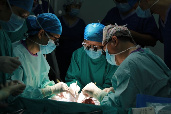 经过一个多月的充分准备,8月20日晨六点整,患者被送进手术室。董家鸿院士、刘昌教授和卢倩教授共同为患者实施“离体肝切除+自体肝移植”手术。手术团队首先在体内进行肝脏游离及第一、第二肝门的解剖分离。在完整切除肝脏后,团队采用人造血管重建体循环,并进行门静脉-下腔静脉临时性分流。在将肝脏拿到体外用冷灌注液进行门静脉和肝动脉灌注后,团队便开始了“精细雕琢”,仔细将门静脉、肝动脉、胆管,以及被病灶包绕的下腔静脉解剖出来。在修整完余肝后,团队进行下腔静脉重建,并移回体内进行下腔静脉、门静脉、肝动脉以及胆管重建。在手术、护理及麻醉团队的娴熟配合下,手术如行云流水,仅8个多小时就完成全部操作,术中出血仅100毫升。手术时间、无肝期时间,均打破以往的记录。术后2小时,患者即恢复自主意识,术后第1日便顺利脱机拔管。刘昌教授及高亚教授等院领导第一时间赶往病房看望患者,目前患者意识清楚,交流正常,各项指标正逐步改善,等待进一步的康复。